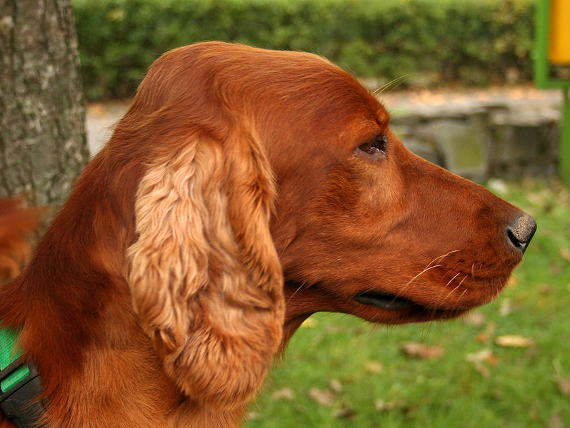 Der Irish Red Setter ist ein Vorstehhund mit sehr gutem Geruchssinn, schnell und wendig, der sich besonders gut im Sumpfgelände für die Schnepfenjagd eignet.